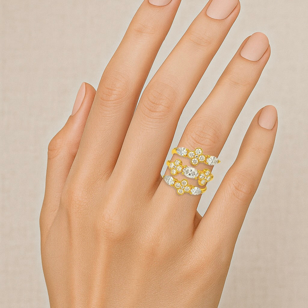 La bague Margaux se distingue par son design envoûtant et audacieux. Avec son triple motif raffiné, elle célèbre la symétrie et l’harmonie dans un effet graphique résolument moderne.