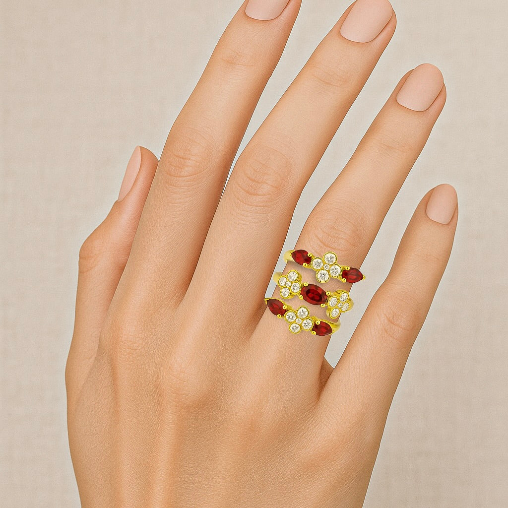 La bague Margaux se distingue par son design envoûtant et audacieux. Avec son triple motif raffiné, elle célèbre la symétrie et l’harmonie dans un effet graphique résolument moderne.